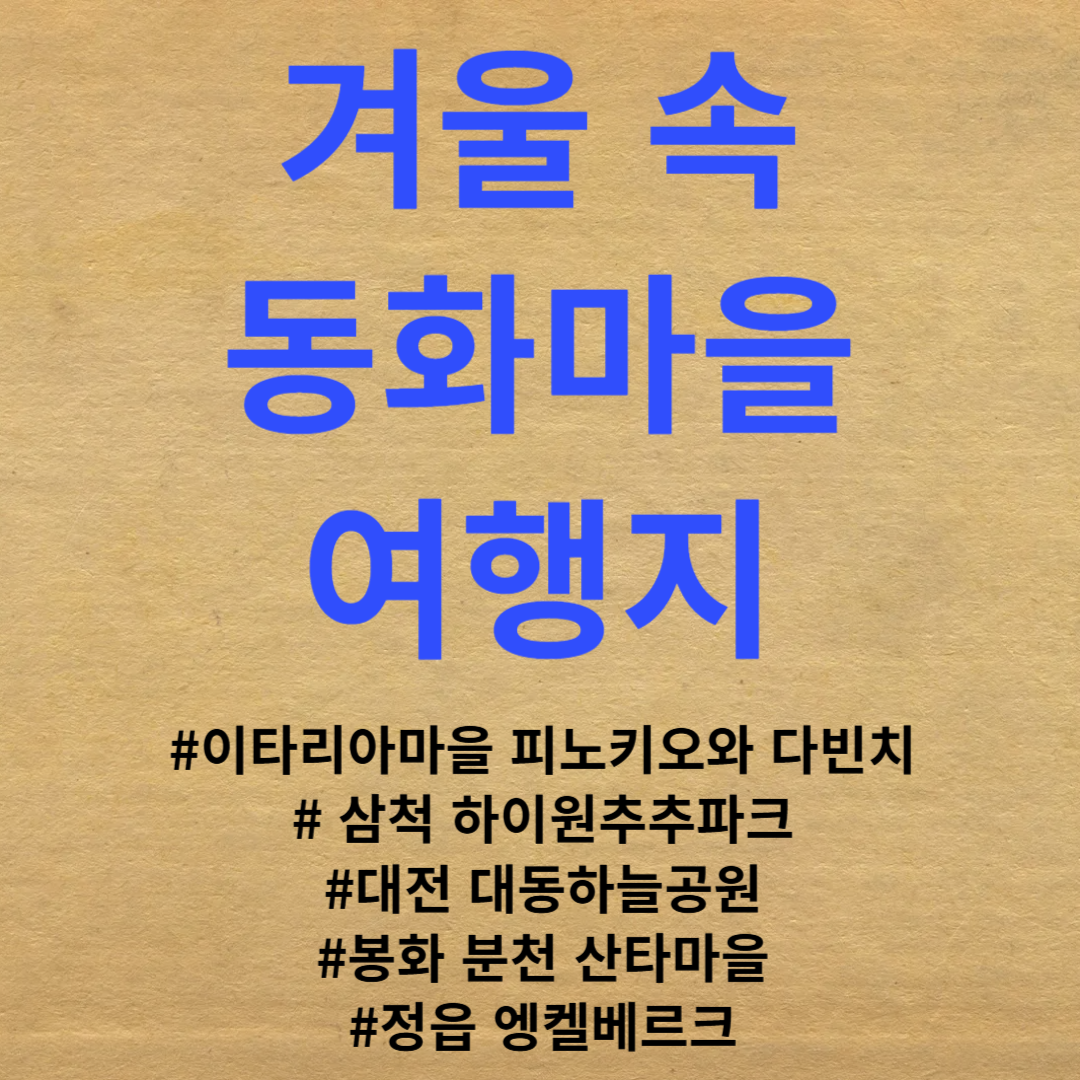 경기 가평, 이탈리아마을 피노키오와 다빈치 경기 가평, 이탈리아마을 피노키오와 다빈치 강원 삼척, 동화속 기차마을 하이원추추파크 강원 삼척, 동화속 기차마을 하이원추추파크 대전, 낭만이 흐르는 명소 대동하늘공원 대전, 낭만이 흐르는 명소 대동하늘공원 경북 봉화, 분천 산타마을 경북 봉화, 분천 산타마을 전북 정읍, 유럽마을 엥겔베르그 전북 정읍, 유럽마을 엥겔베르그
