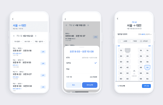 3. 예매할 열차편을 선택하면 객실 등급과 좌석 위치를 정할 수 있습니다.